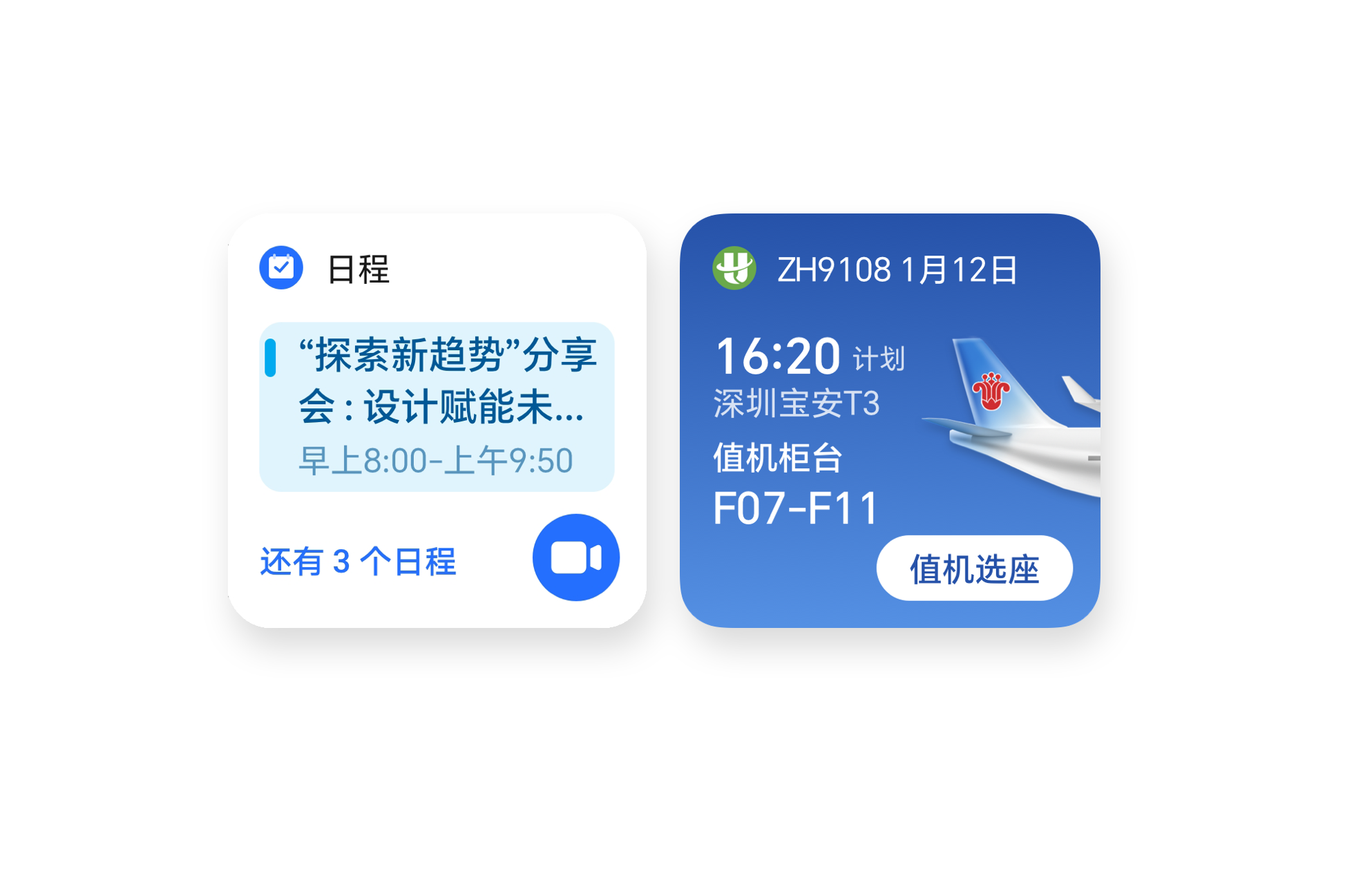YOYO 建议综合考虑你的当前位置、出发地天气、实时路况以及个人航旅习惯等多个因素, 为你提供最适合的航旅出行建议,让航班出票、出发提醒、值机、登机等信息适时呈现。